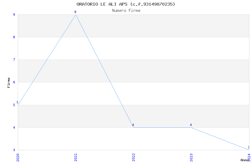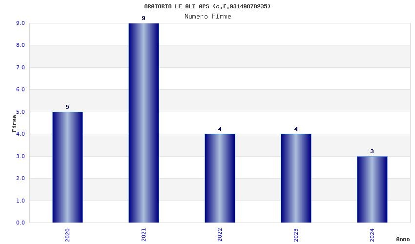 | Anno | Firme | Importi | Media | Naz. | Reg. | Prov. | Comu. |