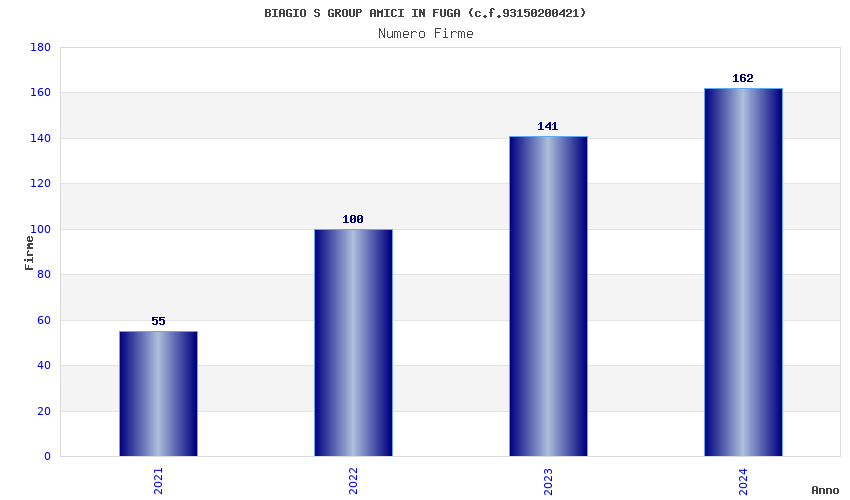 | Anno | Firme | Importi | Media | Naz. | Reg. | Prov. | Comu. |