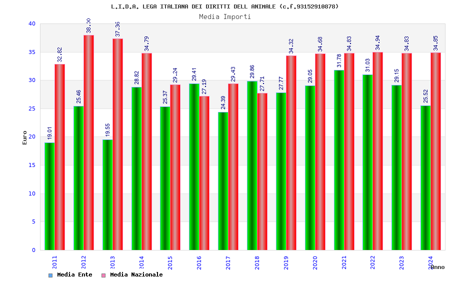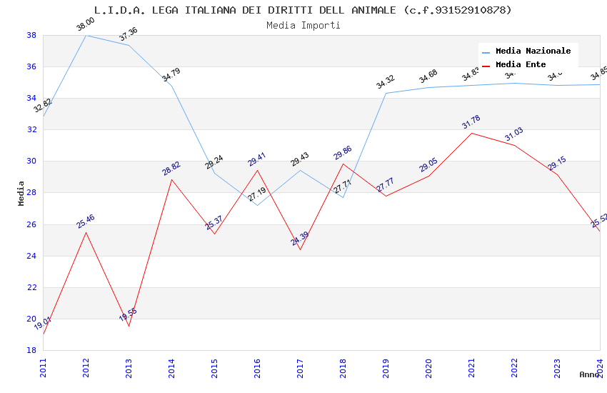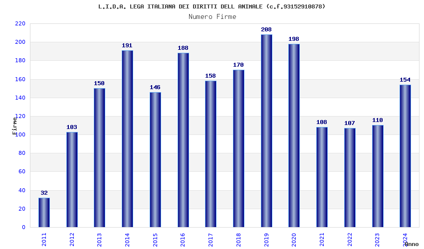 | Anno | Firme | Importi | Media | Naz. | Reg. | Prov. | Comu. |