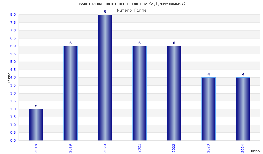 | Anno | Firme | Importi | Media | Naz. | Reg. | Prov. | Comu. |
