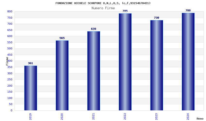 | Anno | Firme | Importi | Media | Naz. | Reg. | Prov. | Comu. |