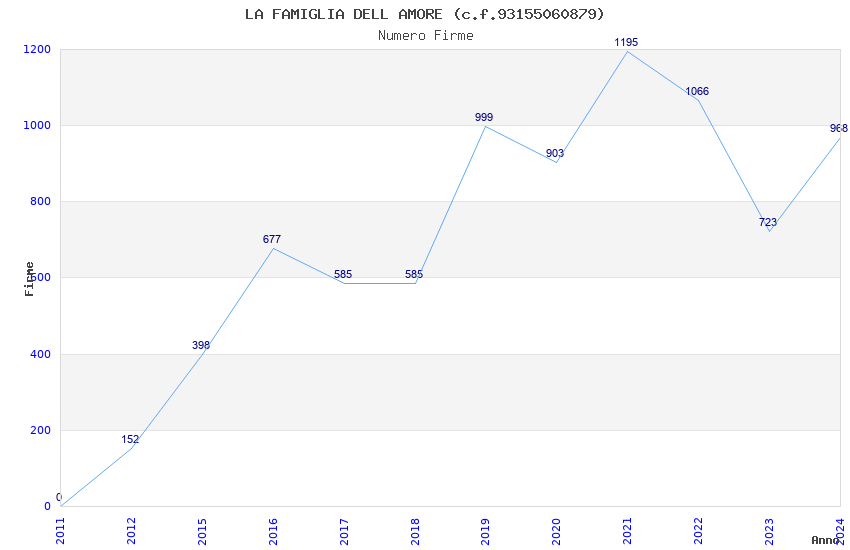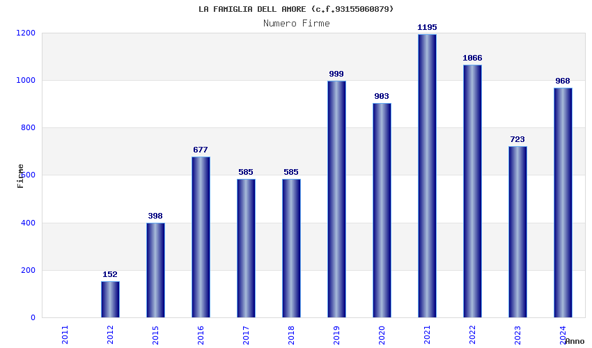 | Anno | Firme | Importi | Media | Naz. | Reg. | Prov. | Comu. |
