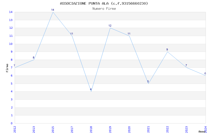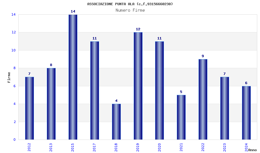 | Anno | Firme | Importi | Media | Naz. | Reg. | Prov. | Comu. |