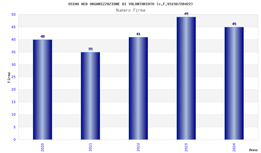 | Anno | Firme | Importi | Media | Naz. | Reg. | Prov. | Comu. |