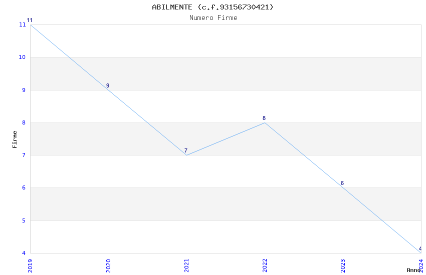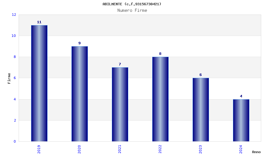 | Anno | Firme | Importi | Media | Naz. | Reg. | Prov. | Comu. |
