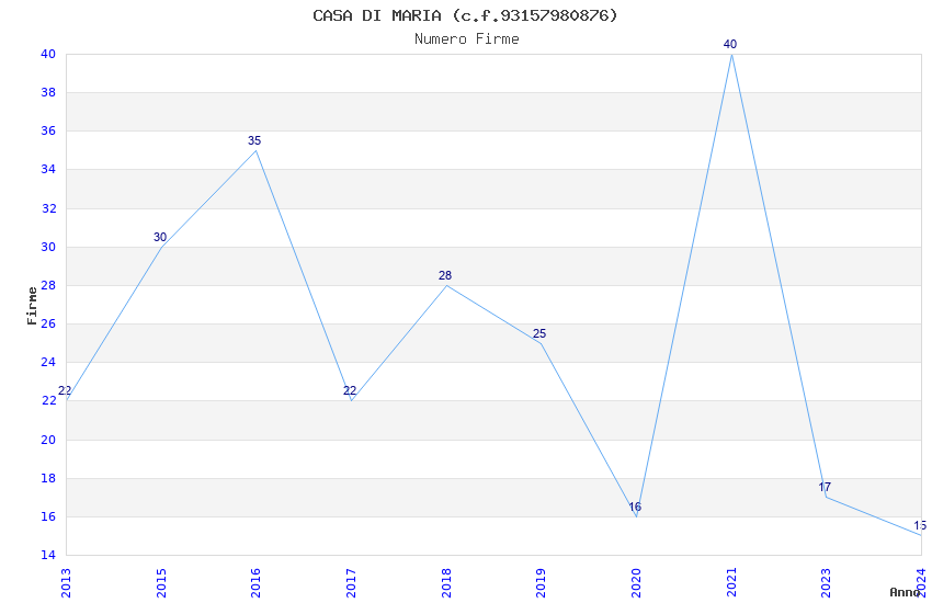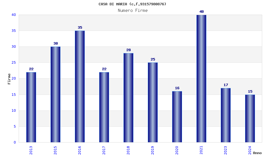 | 2021 | 40 | 2.394,83 | 59,87 | 20.994 | 1.310 | 277 | 3 |