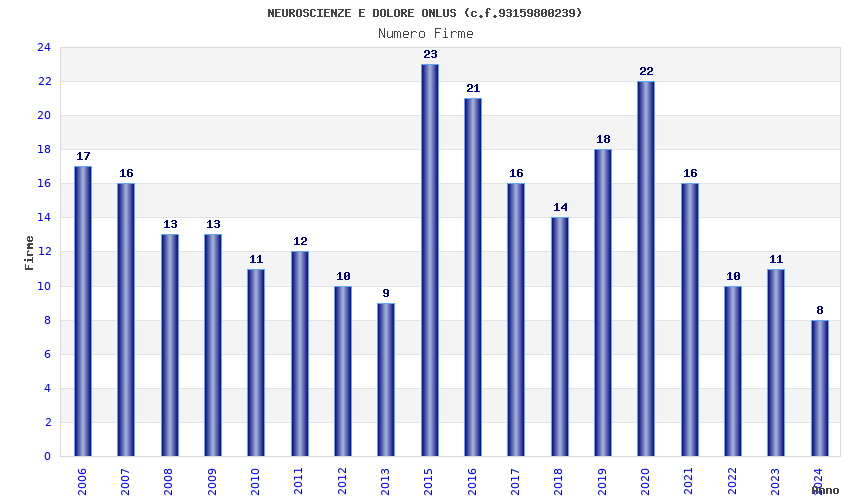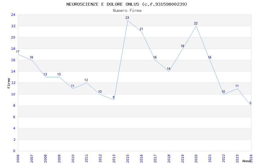 | 2015 | 23 | 2.319,62 | 100,85 | 19.884 | 1.877 | 355 | 9 |