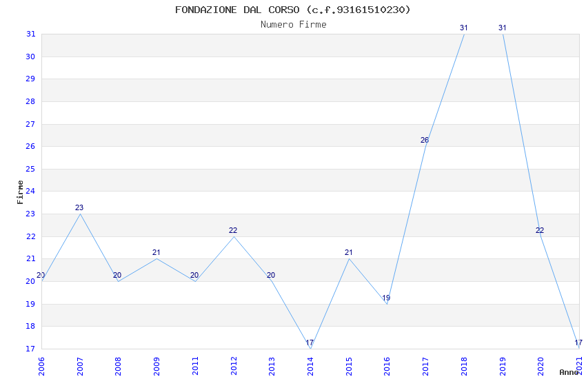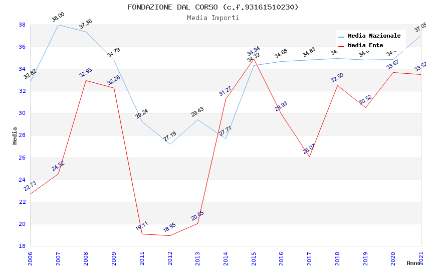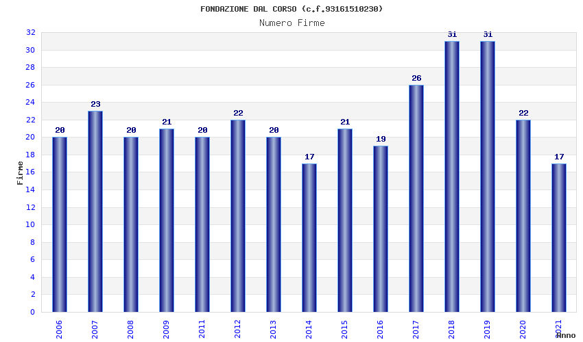 | Anno | Firme | Importi | Media | Naz. | Reg. | Prov. | Comu. |