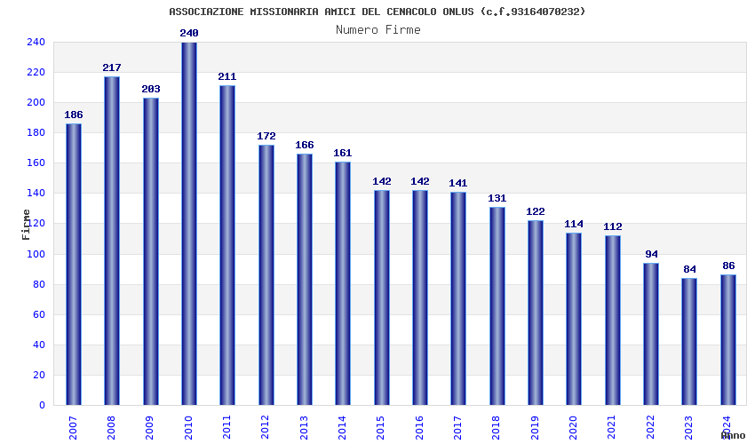 | Anno | Firme | Importi | Media | Naz. | Reg. | Prov. | Comu. |