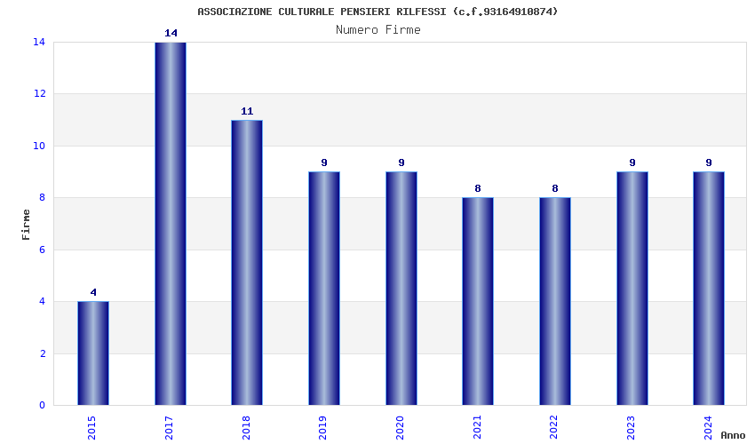 | Anno | Firme | Importi | Media | Naz. | Reg. | Prov. | Comu. |