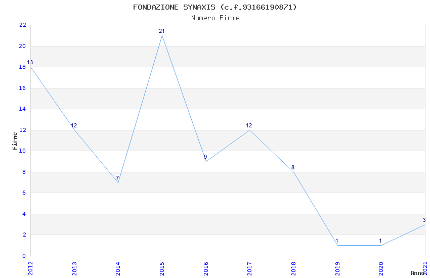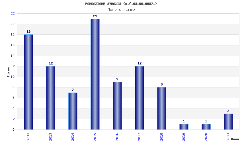 | Anno | Firme | Importi | Media | Naz. | Reg. | Prov. | Comu. |