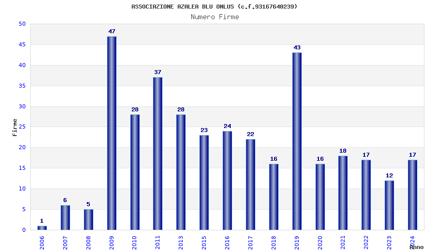 | Anno | Firme | Importi | Media | Naz. | Reg. | Prov. | Comu. |