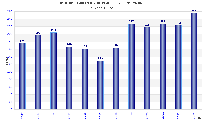 | Anno | Firme | Importi | Media | Naz. | Reg. | Prov. | Comu. |