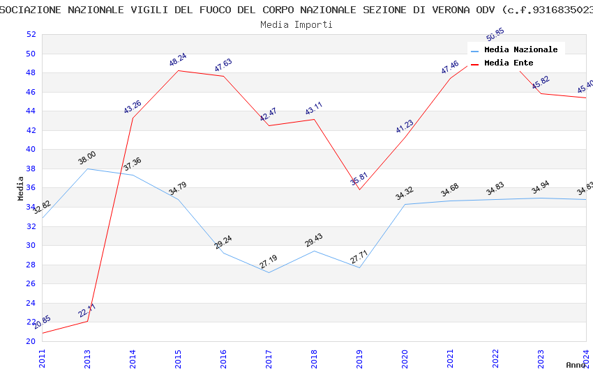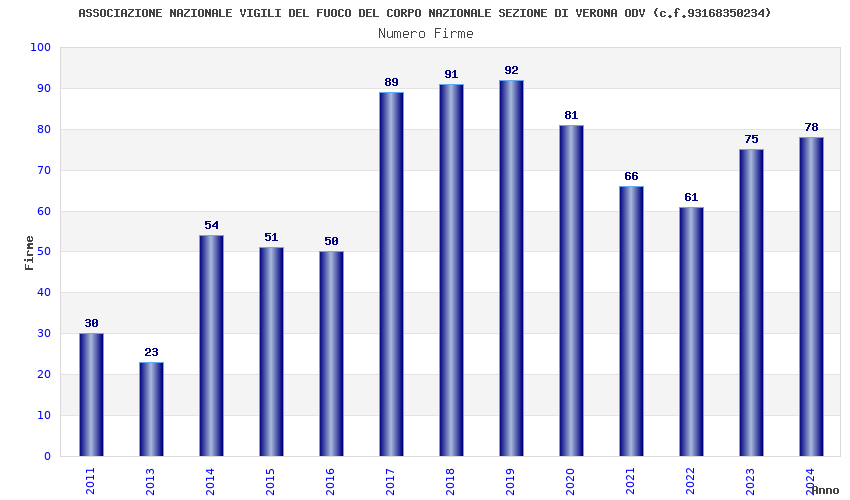 | Anno | Firme | Importi | Media | Naz. | Reg. | Prov. | Comu. |