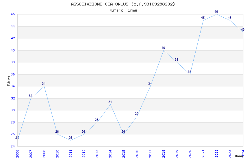 | 2024 | 43 | 1.018,64 | 23,69 | 37.218 | 3.475 | 664 | 11 |