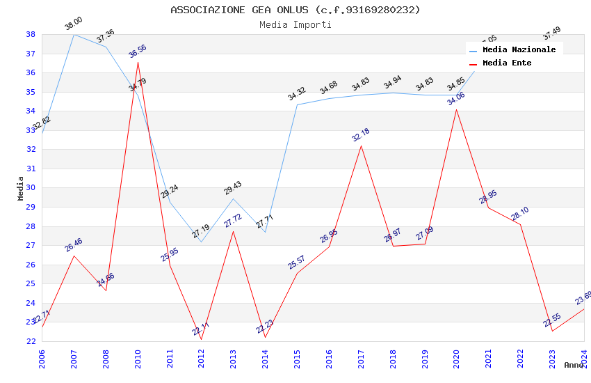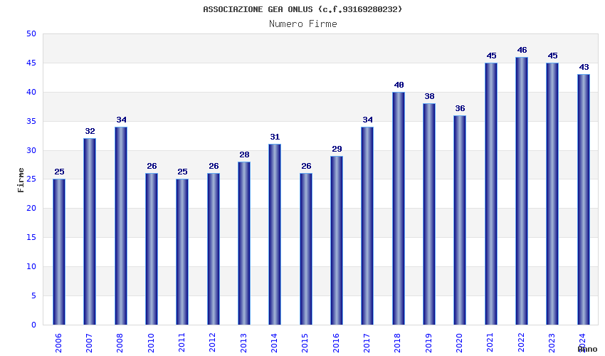 | Anno | Firme | Importi | Media | Naz. | Reg. | Prov. | Comu. |