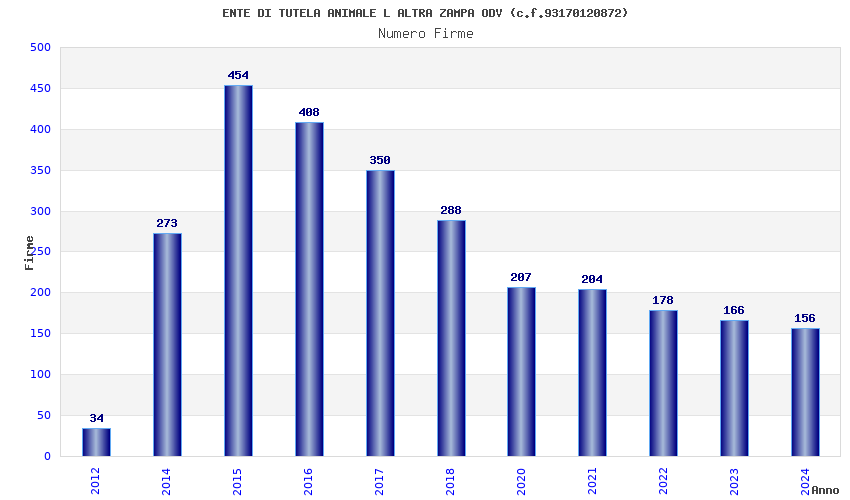 | Anno | Firme | Importi | Media | Naz. | Reg. | Prov. | Comu. |