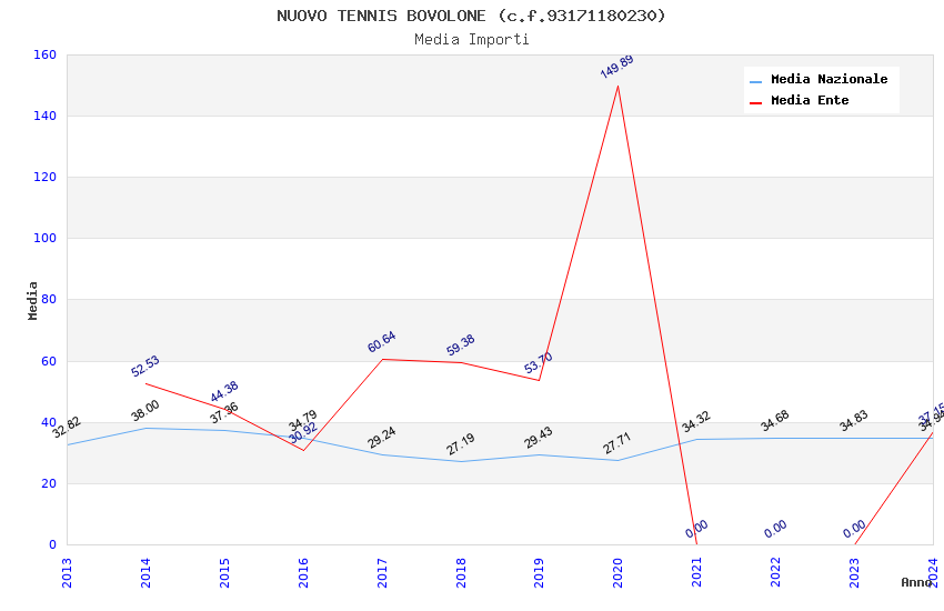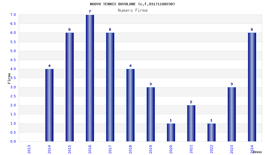 | Anno | Firme | Importi | Media | Naz. | Reg. | Prov. | Comu. |