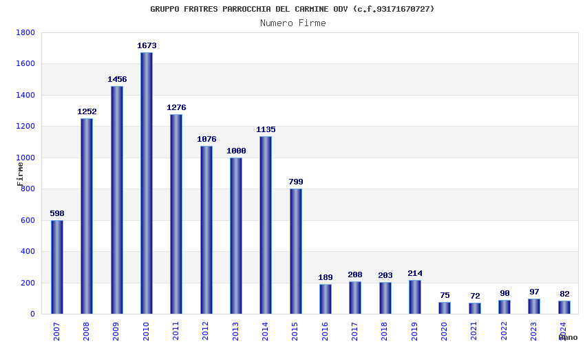 | Anno | Firme | Importi | Media | Naz. | Reg. | Prov. | Comu. |