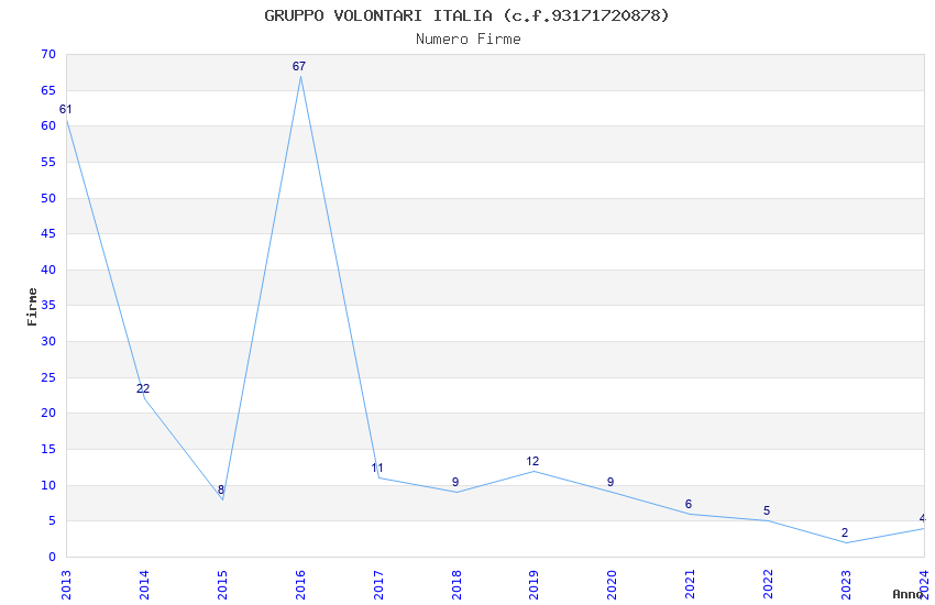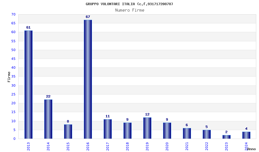 | Anno | Firme | Importi | Media | Naz. | Reg. | Prov. | Comu. |