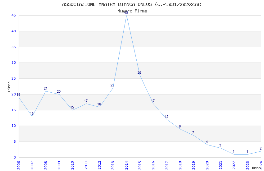 | 2014 | 45 | 1.136,46 | 25,25 | 29.336 | 2.756 | 543 | 16 |