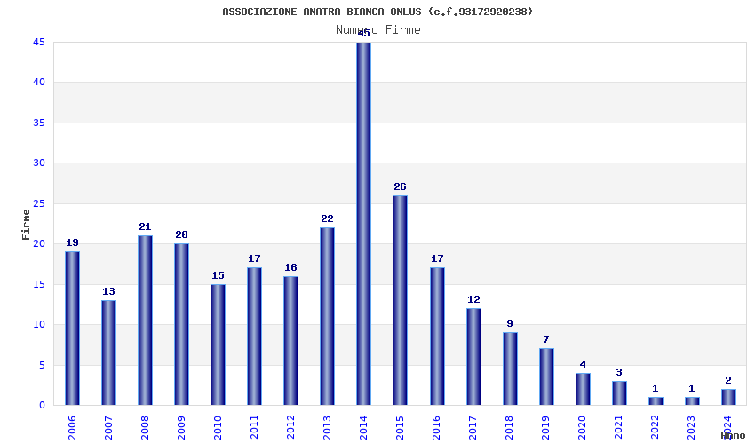 | Anno | Firme | Importi | Media | Naz. | Reg. | Prov. | Comu. |