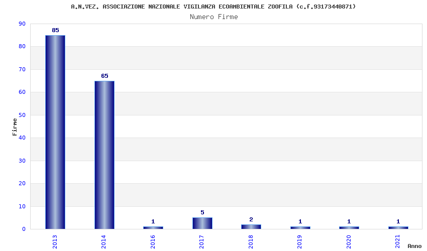 | Anno | Firme | Importi | Media | Naz. | Reg. | Prov. | Comu. |