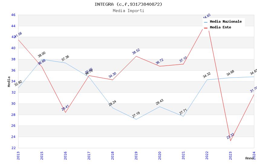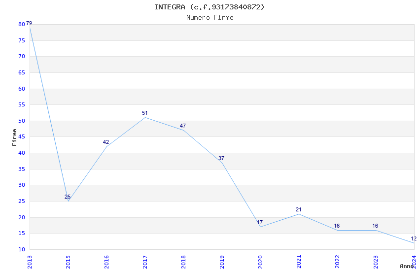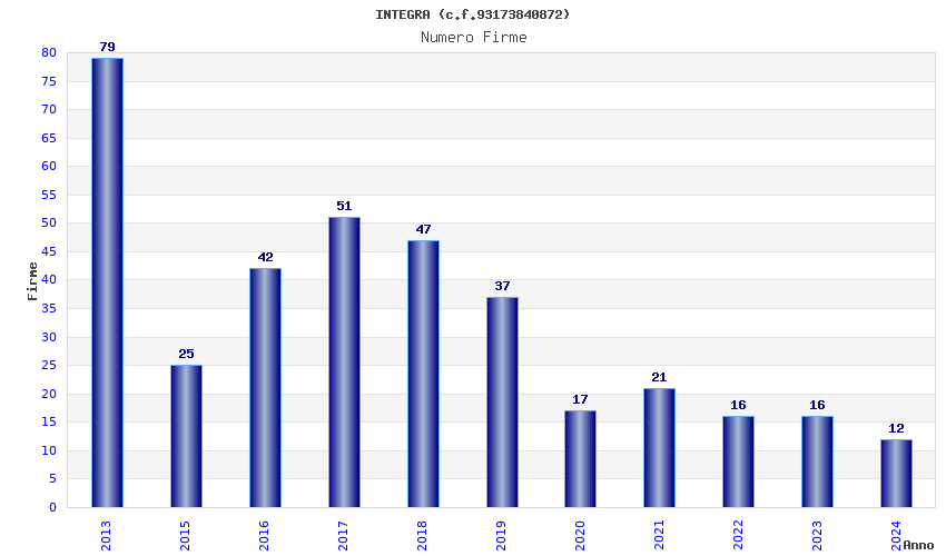 | Anno | Firme | Importi | Media | Naz. | Reg. | Prov. | Comu. |