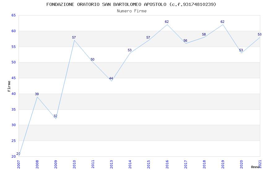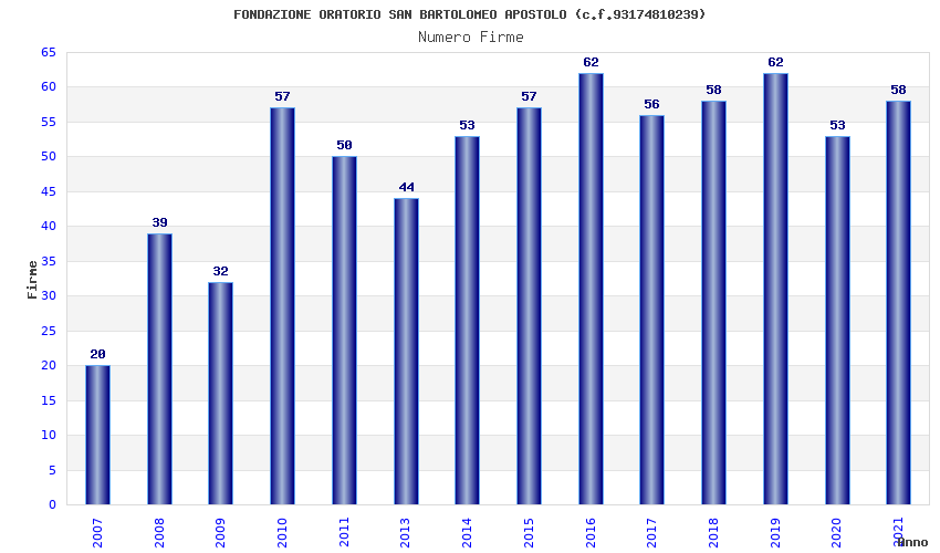 | Anno | Firme | Importi | Media | Naz. | Reg. | Prov. | Comu. |
