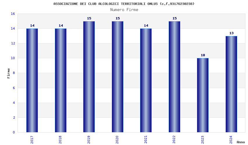 | Anno | Firme | Importi | Media | Naz. | Reg. | Prov. | Comu. |