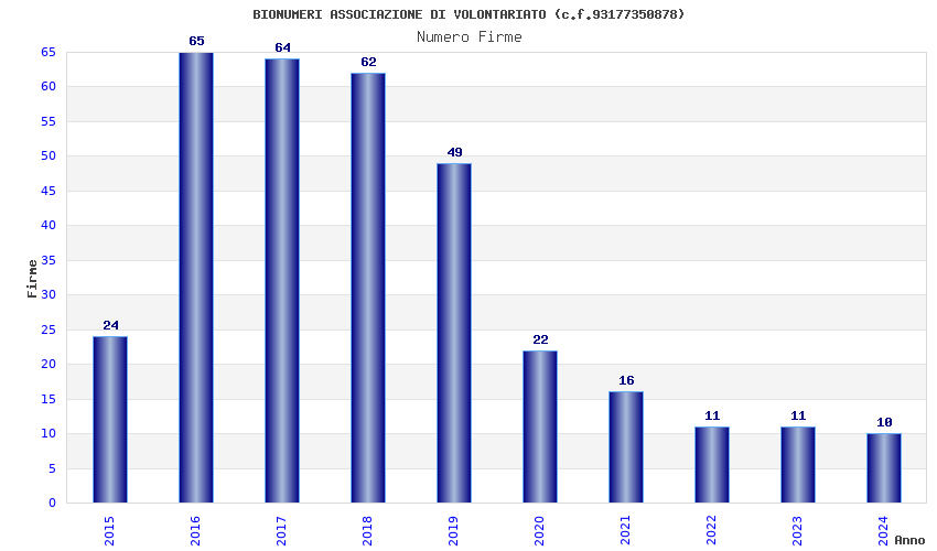 | Anno | Firme | Importi | Media | Naz. | Reg. | Prov. | Comu. |