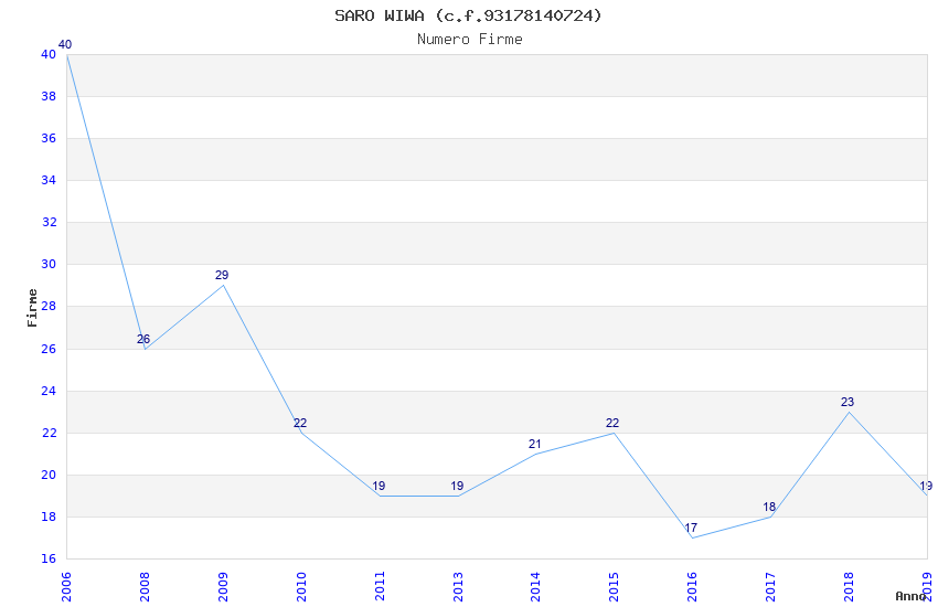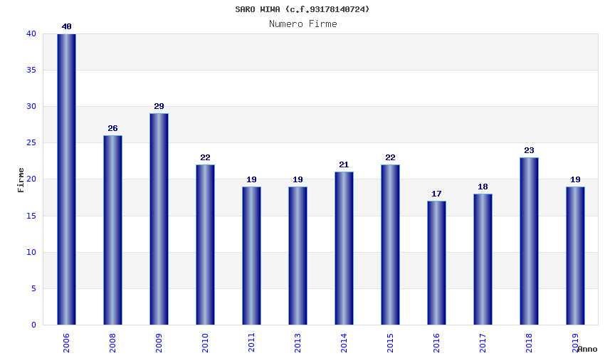| Anno | Firme | Importi | Media | Naz. | Reg. | Prov. | Comu. |