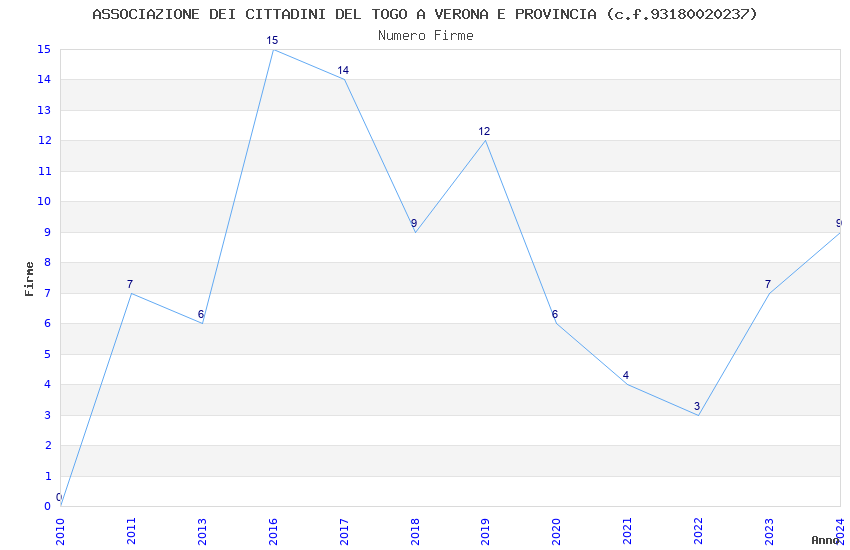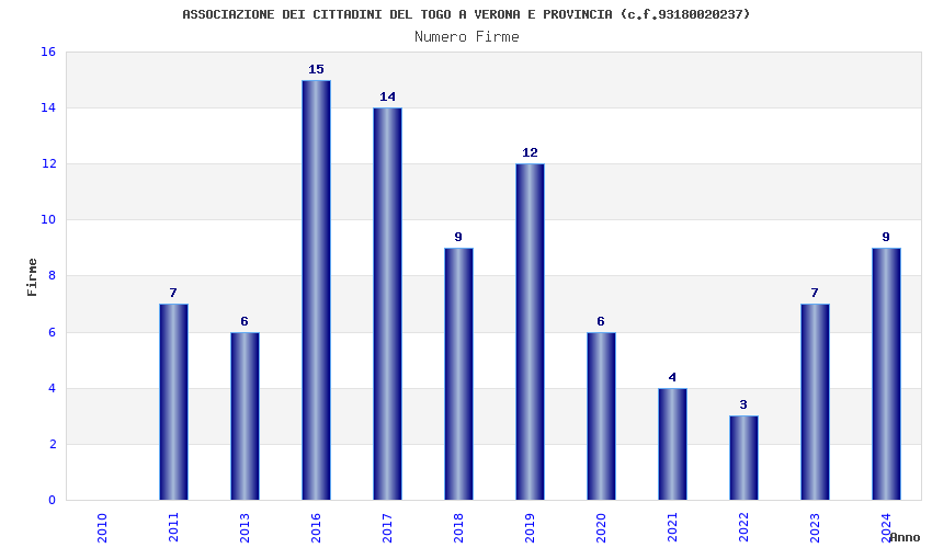 | Anno | Firme | Importi | Media | Naz. | Reg. | Prov. | Comu. |