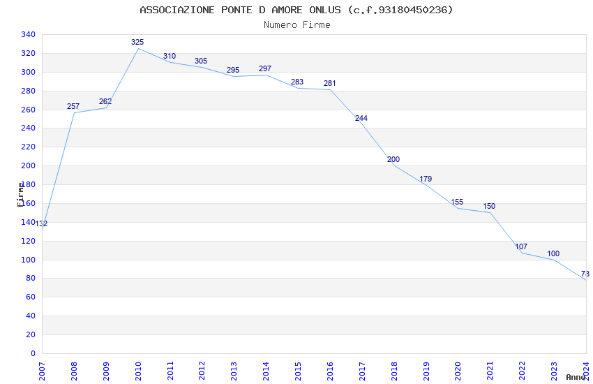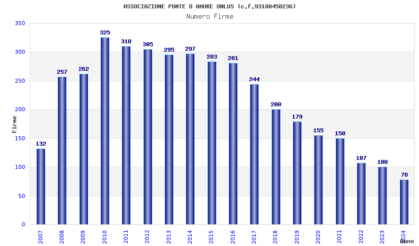 | Anno | Firme | Importi | Media | Naz. | Reg. | Prov. | Comu. |