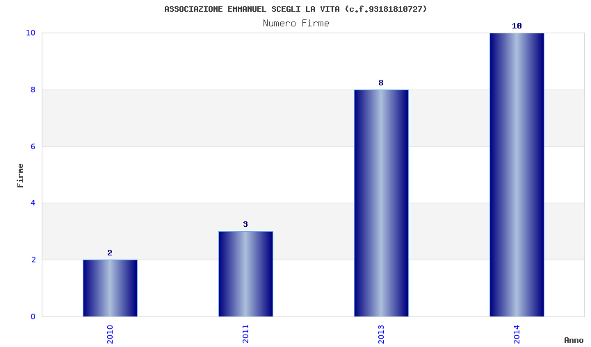 | Anno | Firme | Importi | Media | Naz. | Reg. | Prov. | Comu. |