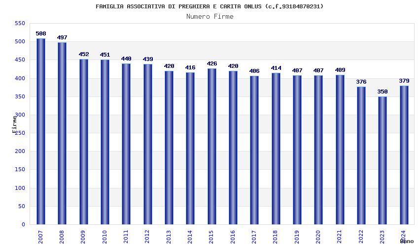 | Anno | Firme | Importi | Media | Naz. | Reg. | Prov. | Comu. |