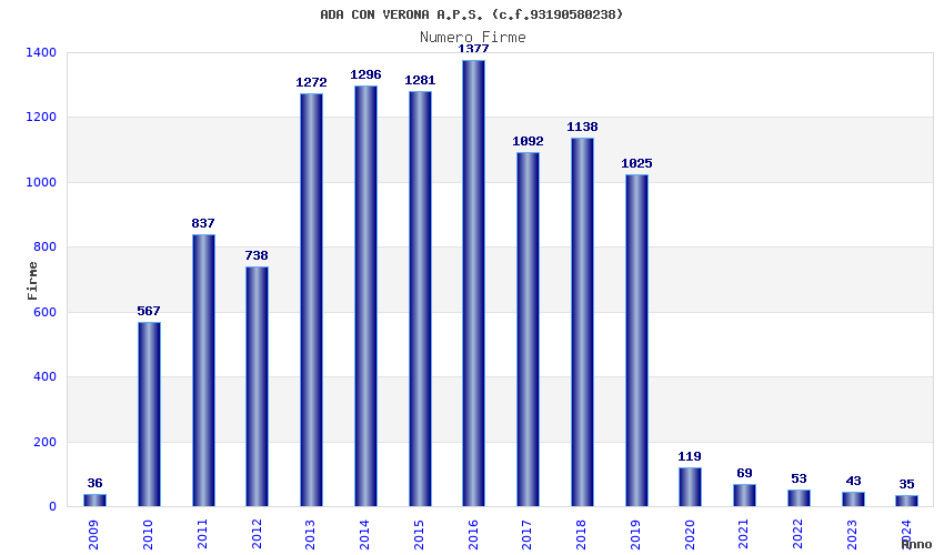 | Anno | Firme | Importi | Media | Naz. | Reg. | Prov. | Comu. |