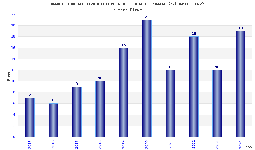 | Anno | Firme | Importi | Media | Naz. | Reg. | Prov. | Comu. |