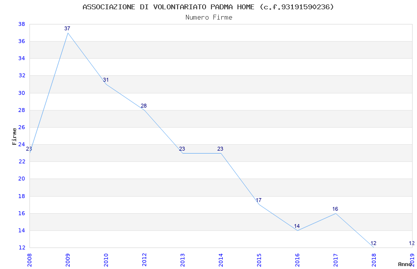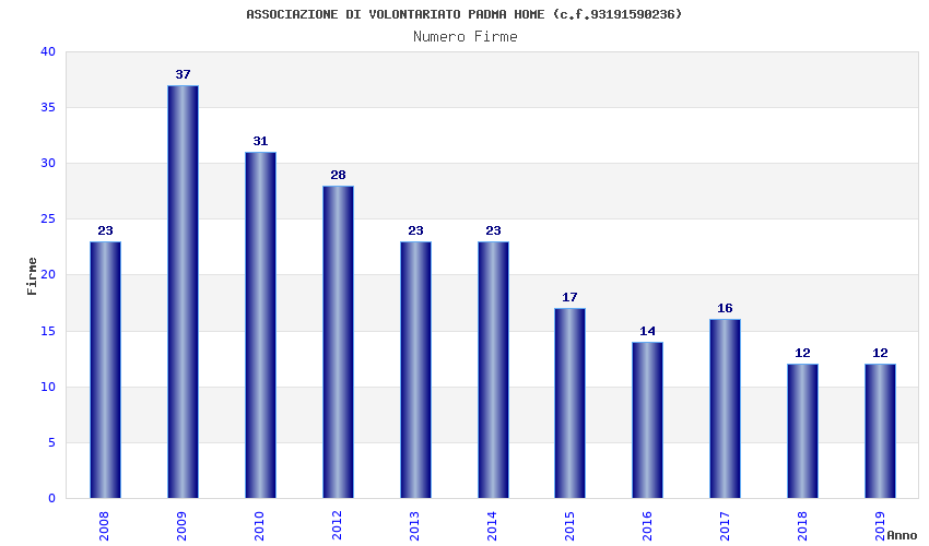 | Anno | Firme | Importi | Media | Naz. | Reg. | Prov. | Comu. |