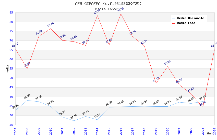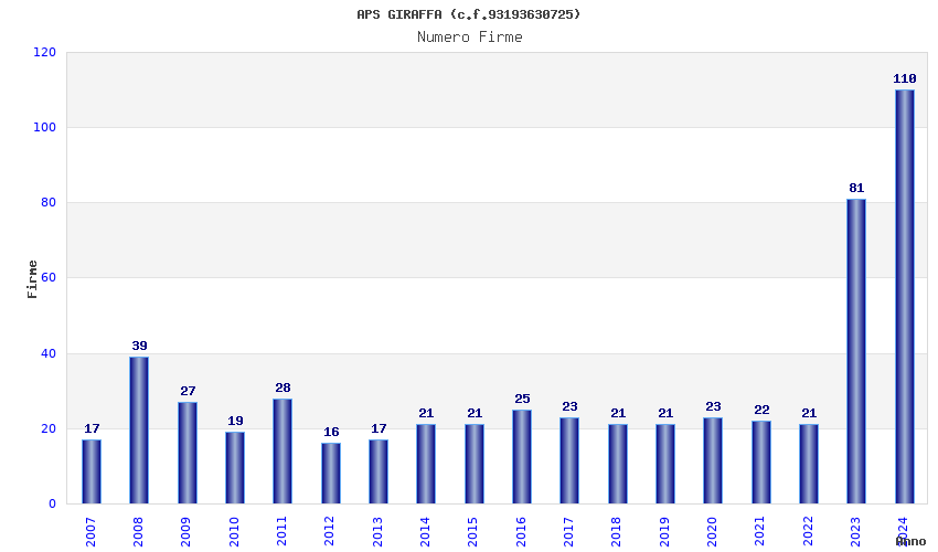 | Anno | Firme | Importi | Media | Naz. | Reg. | Prov. | Comu. |