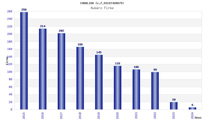 Anno Firme Importi Media Naz. Reg. Prov. Comu.