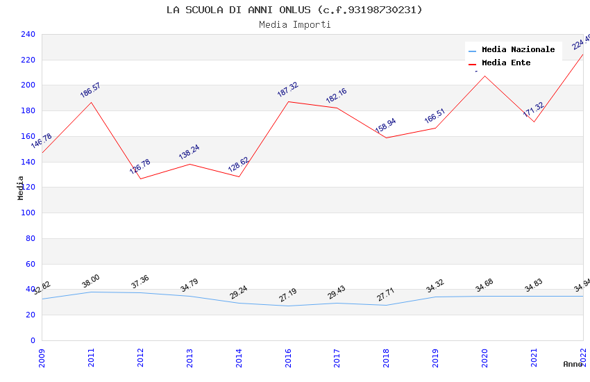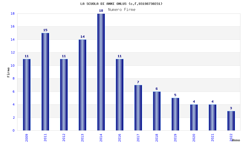 | Anno | Firme | Importi | Media | Naz. | Reg. | Prov. | Comu. |