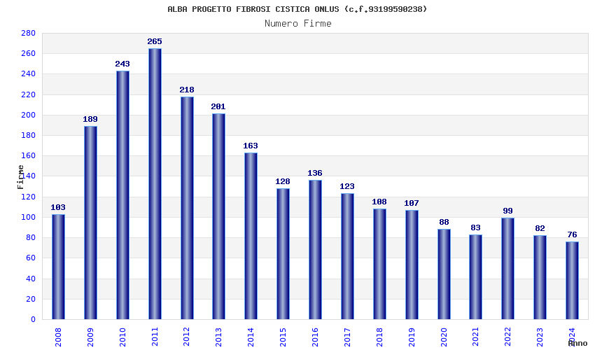 | Anno | Firme | Importi | Media | Naz. | Reg. | Prov. | Comu. |