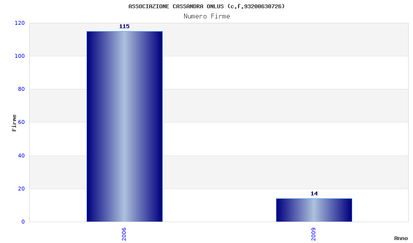 | Anno | Firme | Importi | Media | Naz. | Reg. | Prov. | Comu. |