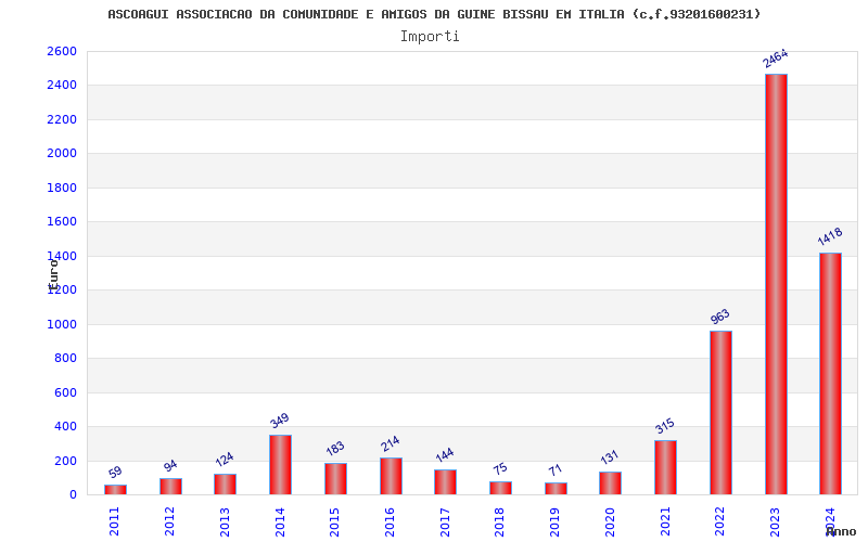 | Anno | Firme | Importi | Media | Naz. | Reg. | Prov. | Comu. |