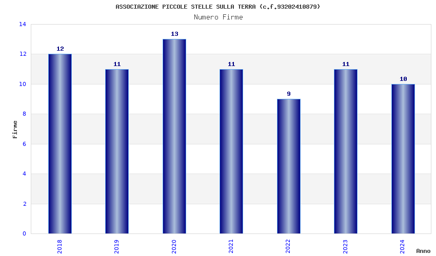 | Anno | Firme | Importi | Media | Naz. | Reg. | Prov. | Comu. |