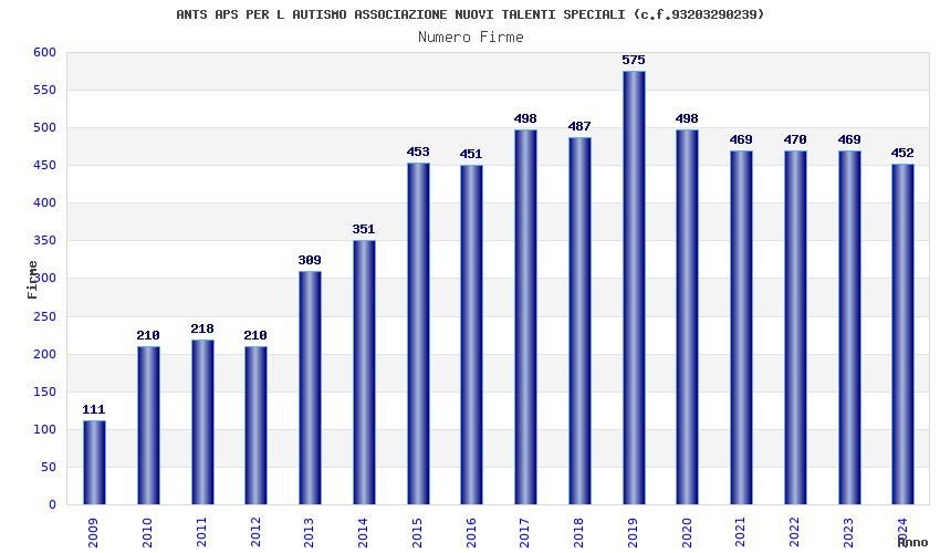 | Anno | Firme | Importi | Media | Naz. | Reg. | Prov. | Comu. |