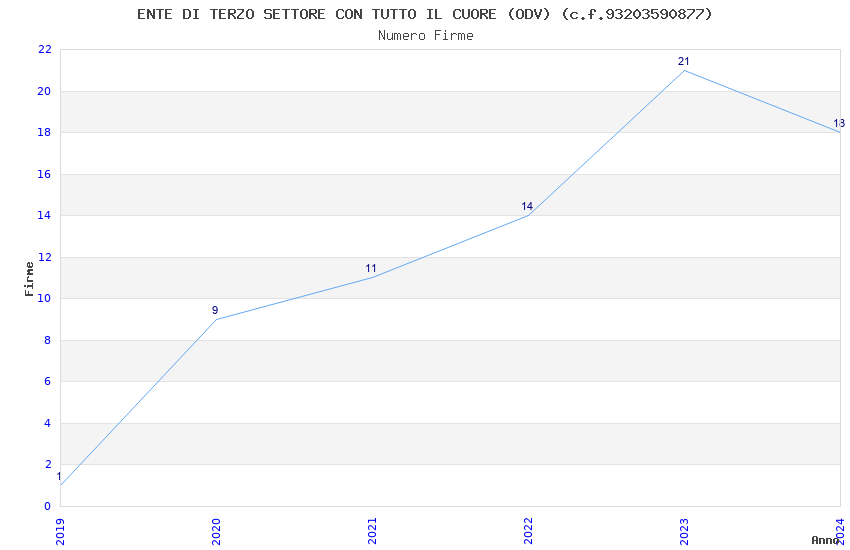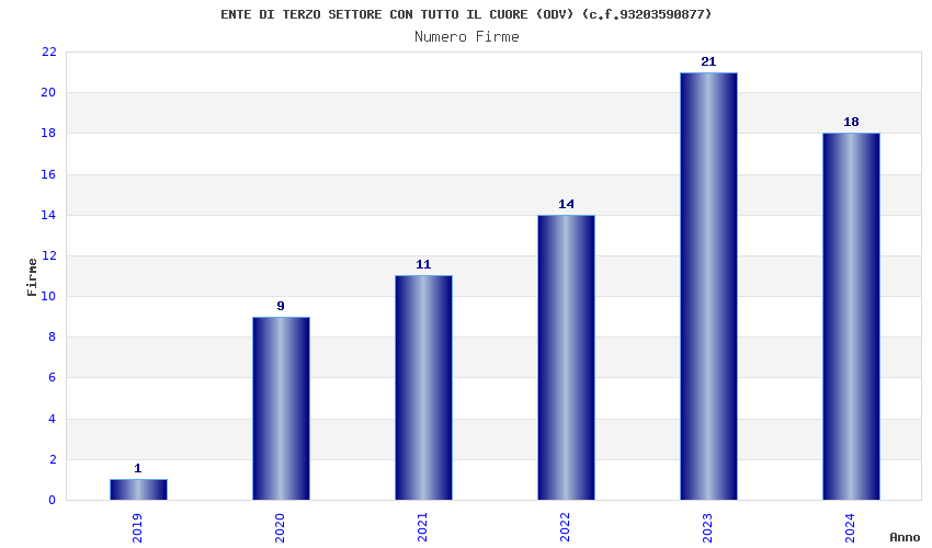 | Anno | Firme | Importi | Media | Naz. | Reg. | Prov. | Comu. |