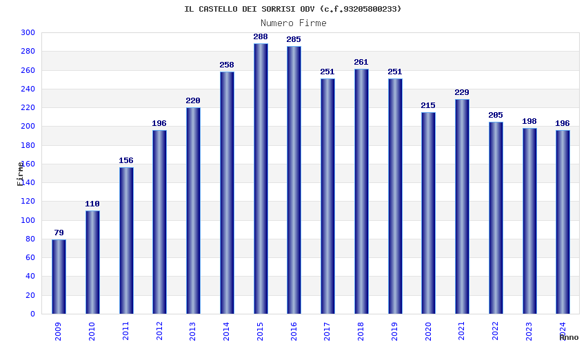 | Anno | Firme | Importi | Media | Naz. | Reg. | Prov. | Comu. |