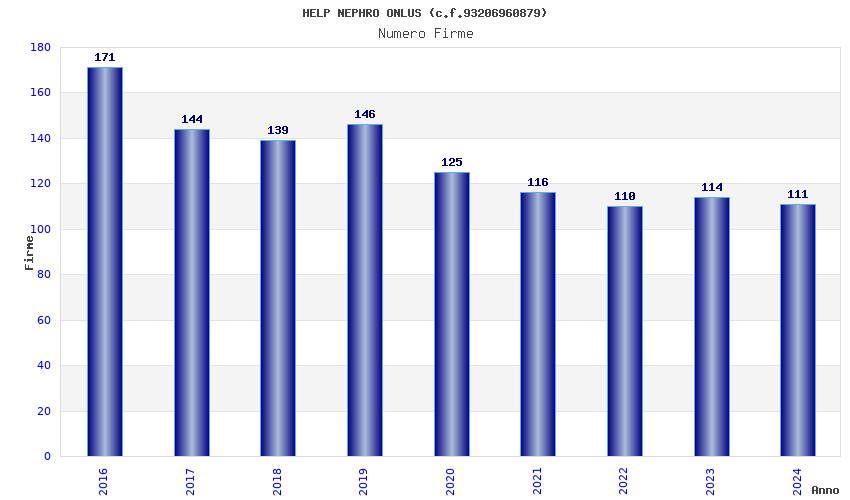 | Anno | Firme | Importi | Media | Naz. | Reg. | Prov. | Comu. |